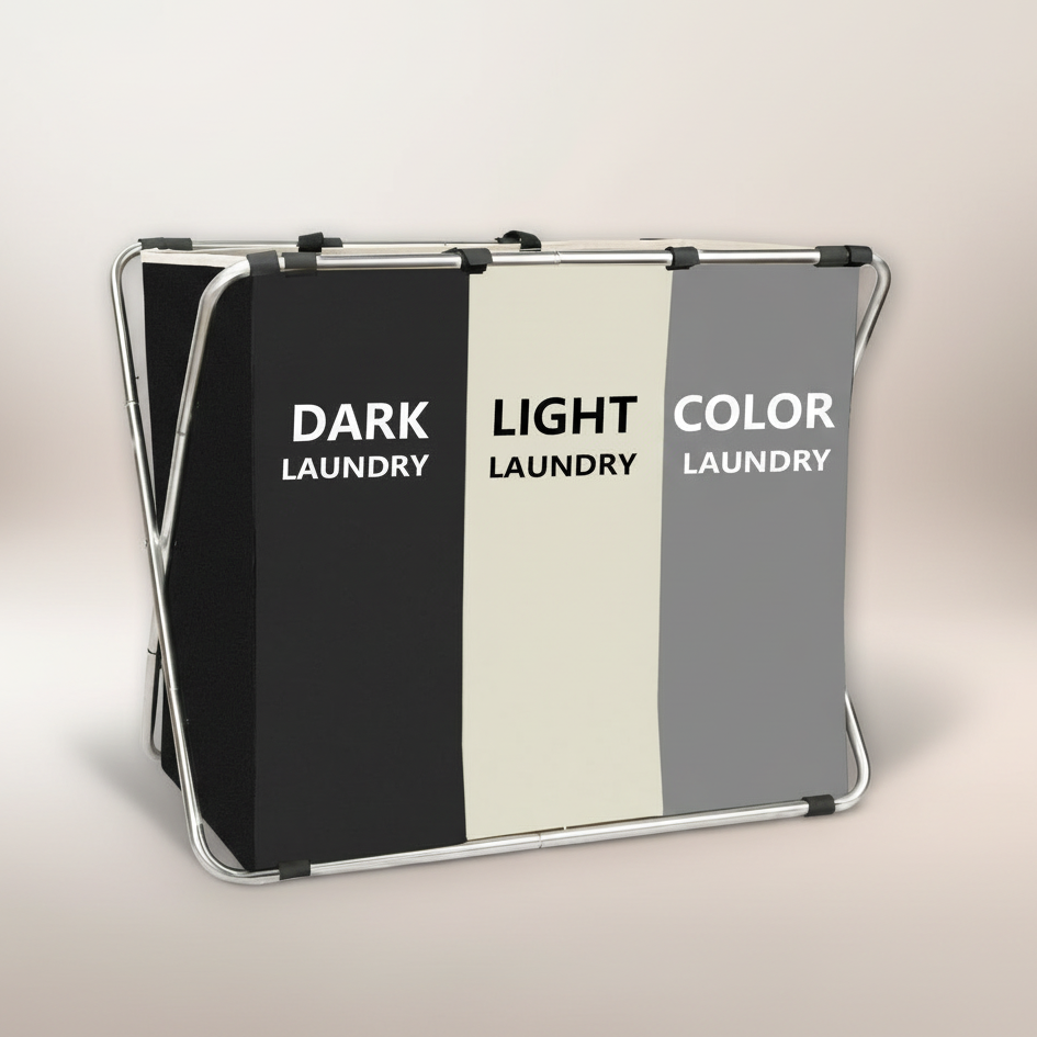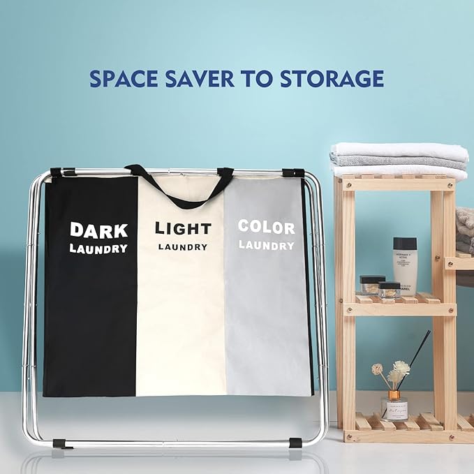 - Save laundry time: Divided into 3 sections, each with a 45L capacity. Easily separate laundry using the black, gray, and white compartments.